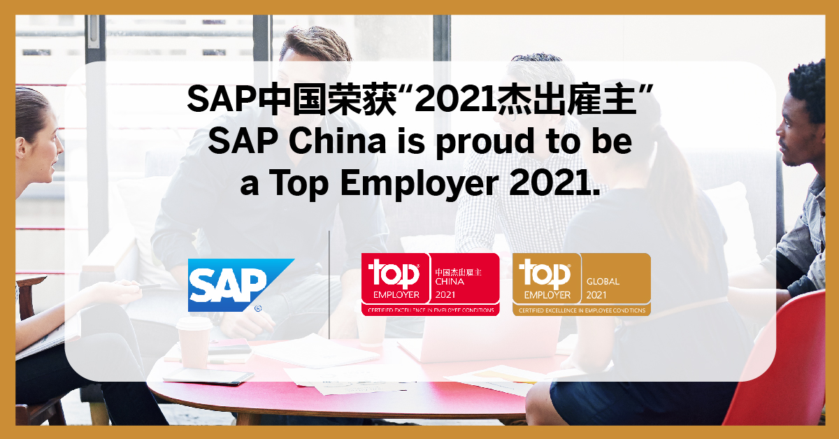 SAP中國榮獲了由權威職場認證機構「杰出雇主調研」頒發的「2021杰出雇主」獎項。這是 SAP 中國連續第六年獲此殊榮。