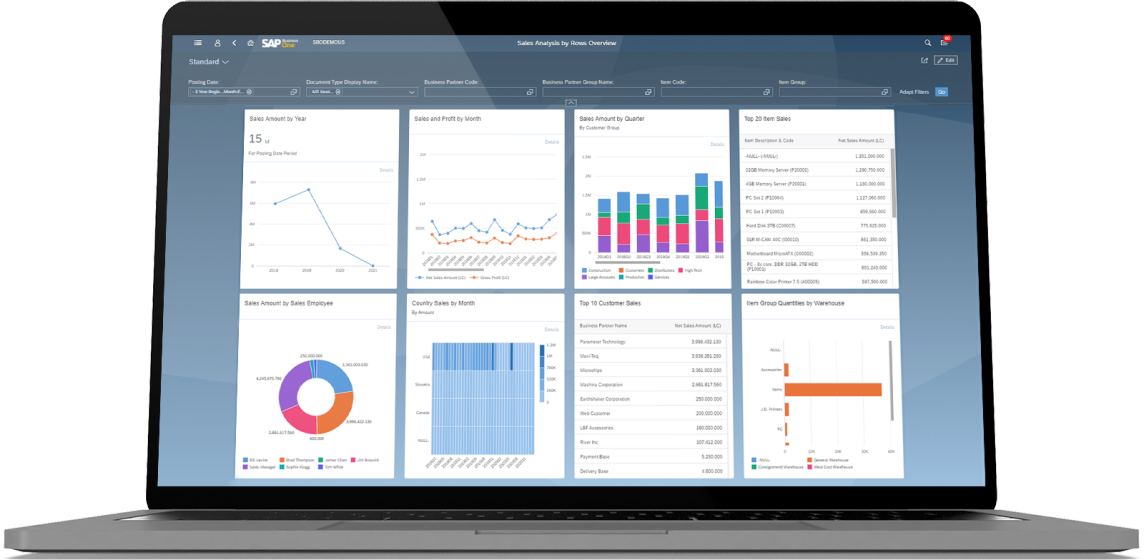 交互式分析:借助與標準 Excel 功能集成的 SAP B1,從多個視角了解業務狀況。