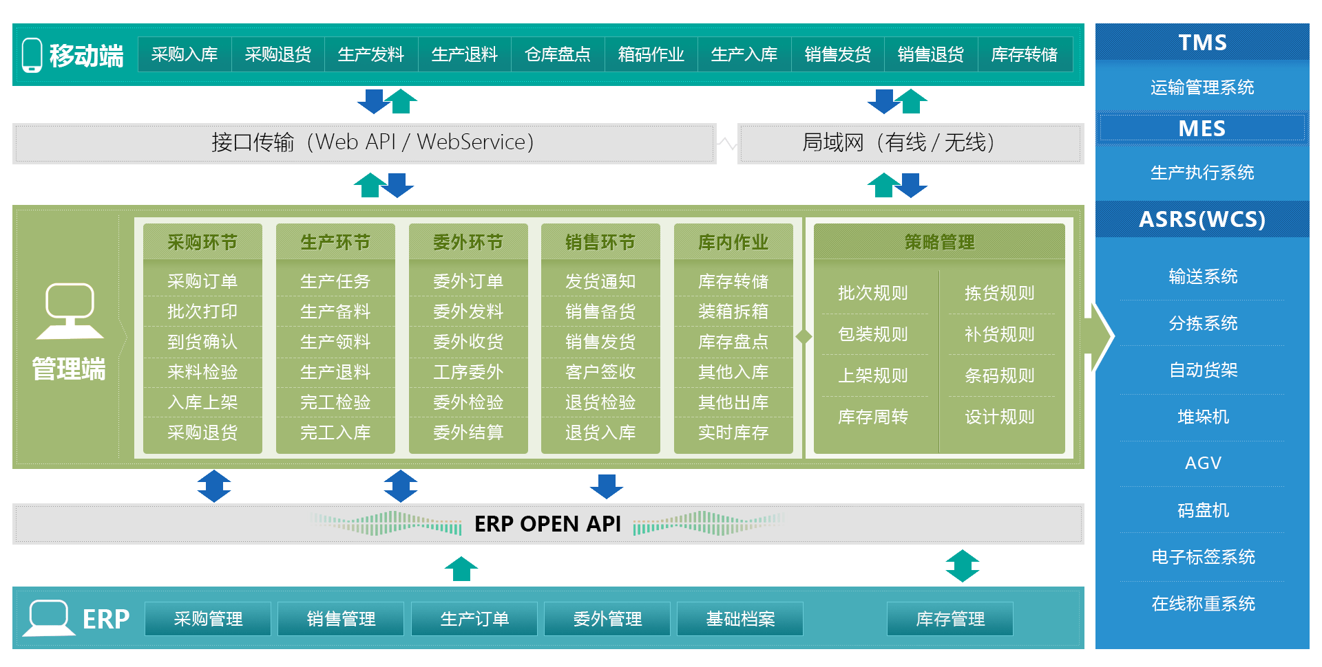 中科華智WMS系統(tǒng),以實用、高效、便捷、經(jīng)濟(jì)的建設(shè)方式為原則,實現(xiàn)企業(yè)在倉儲物流各種業(yè)務(wù)環(huán)節(jié)的連通,廣泛應(yīng)用于裝備制造、機(jī)械加工、汽車零配件、食品加工、服裝、物流等多個行業(yè)。系統(tǒng)圍繞采購、生產(chǎn)、銷售、庫內(nèi)作業(yè)等所有的業(yè)務(wù)環(huán)節(jié),幫助企業(yè)對原材料、輔料、備件、半成品、成品進(jìn)行精細(xì)化的管理,系統(tǒng)結(jié)合多年業(yè)務(wù)沉淀經(jīng)驗,嵌入最優(yōu)的解決方案。系統(tǒng)支持智能化立體倉庫的無縫銜接,能有效協(xié)調(diào)各種物流設(shè)備(輸送機(jī)、堆垛機(jī)、穿梭車以及機(jī)器人、自動導(dǎo)引小車等)之間的高效運行。同時通過物聯(lián)網(wǎng)、云計算、邊緣計算等技術(shù)應(yīng)用,實現(xiàn)企業(yè)內(nèi)部倉庫、外部倉庫、以及業(yè)務(wù)伙伴(供應(yīng)商、客戶)之間的業(yè)務(wù)協(xié)同和數(shù)據(jù)互聯(lián),助力企業(yè)打造智能化的倉儲物流信息化平臺。
